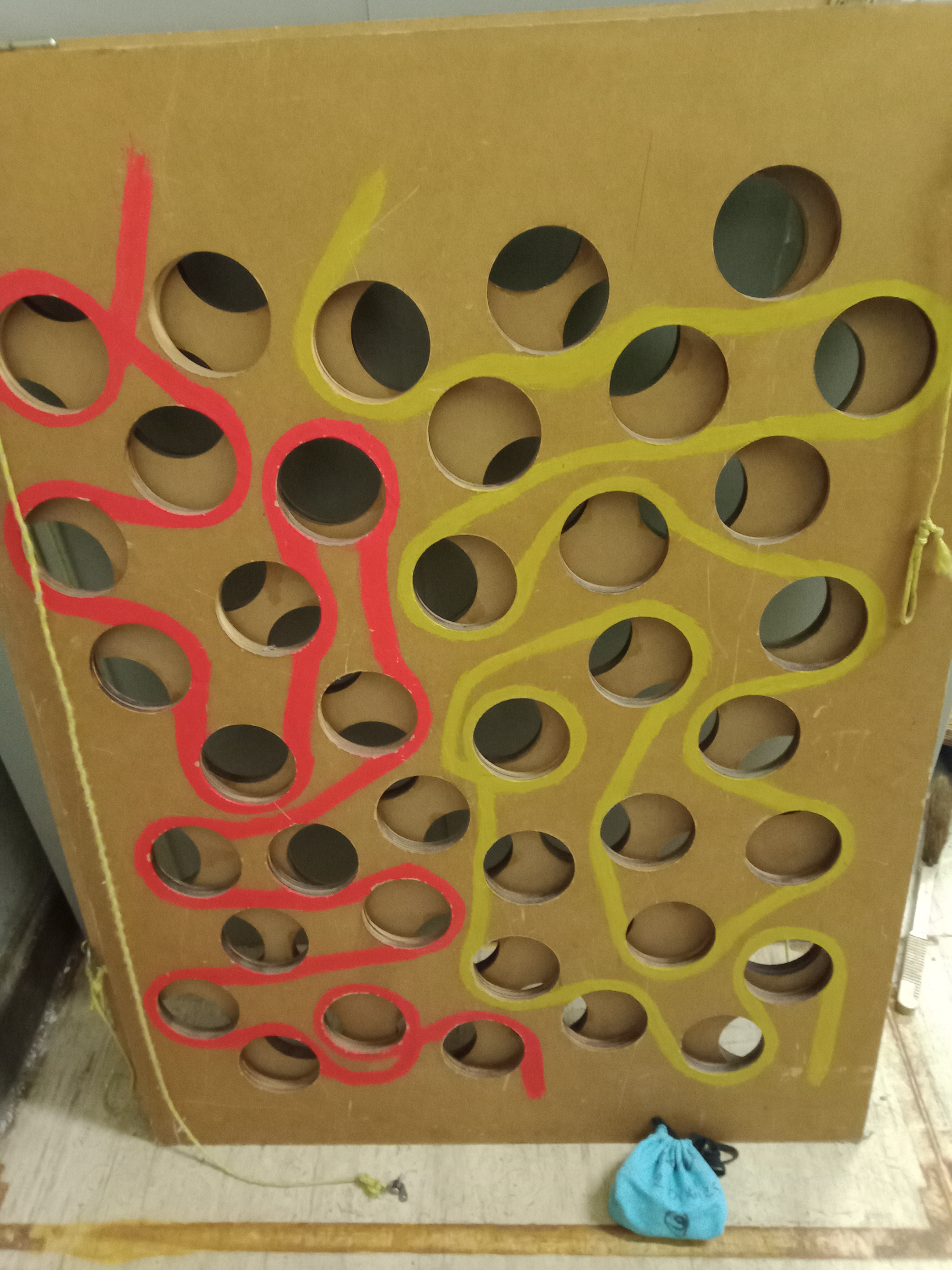 Faire monter et redescendre sa balle le plus vite possible sans la faire tomber dans les trous. 2 planches de 122 cm par 90 cm (lourd !)