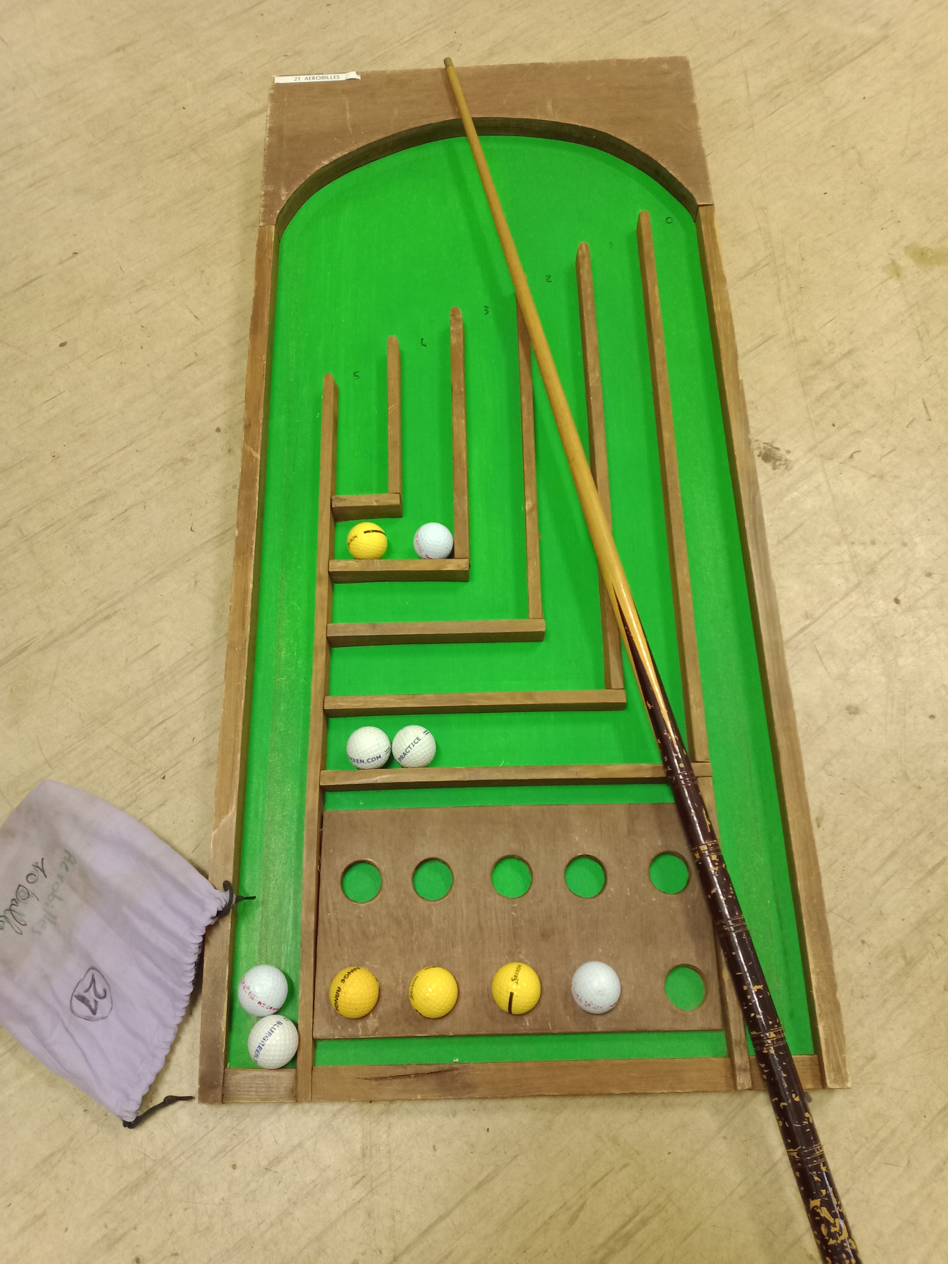 Avoir le score le plus élevé en plaçant ses boules dans les compartiments. Un plateau de 122 cm par 51 cm