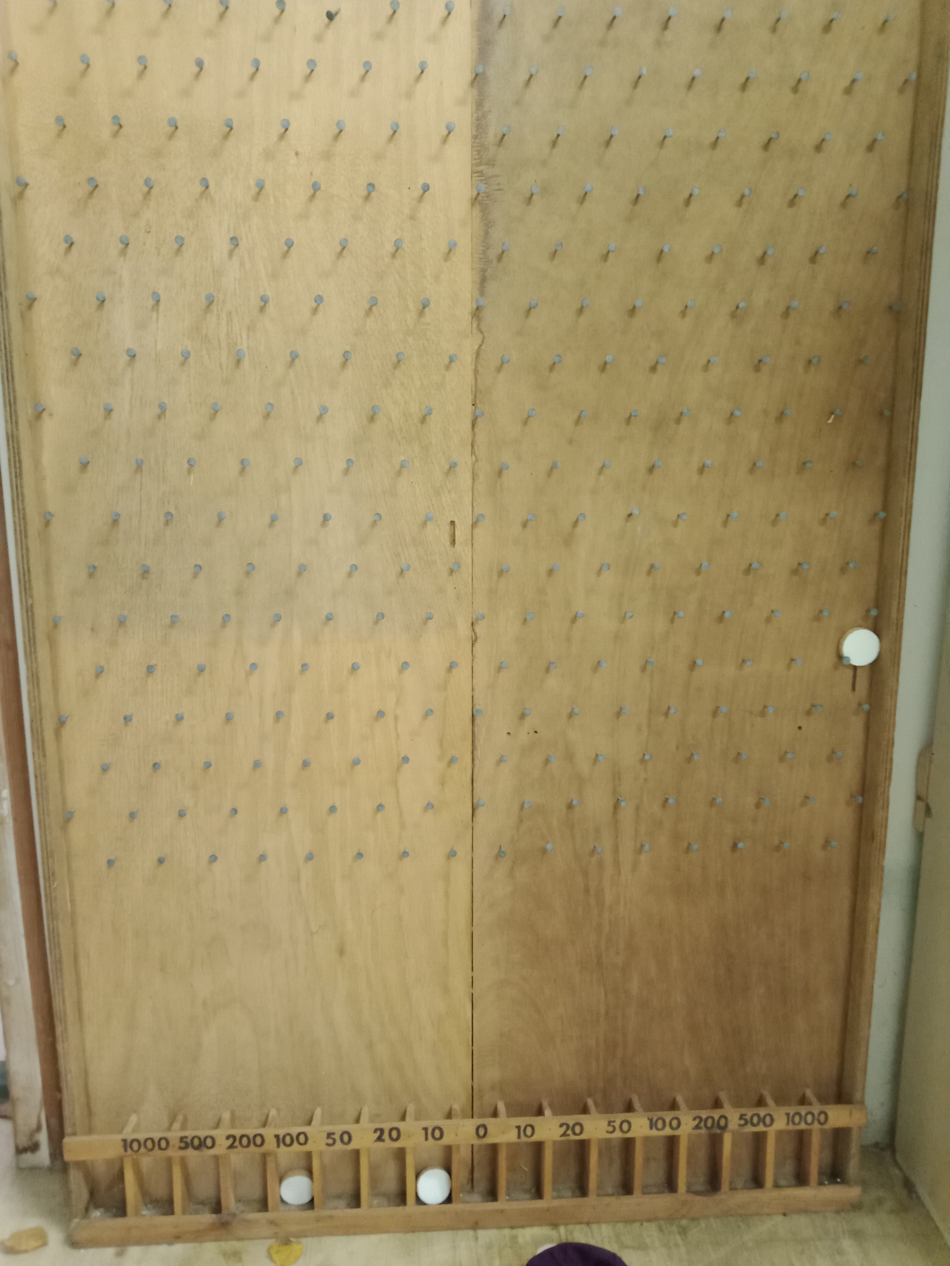 Faire tomber les palets entre les clous afin de réaliser le score le plus élevé ou pour remporter le nombre misé. 162 cm par 104 cm (lourd et encombrant !)