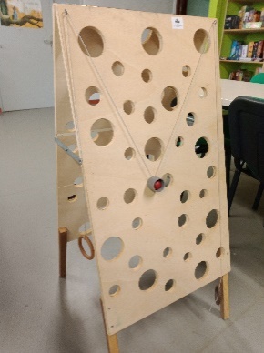 Traverser le gruyère avec une boule en partant du bas et sans tomber dans les trous. Un support de 105 cm x 50 cm